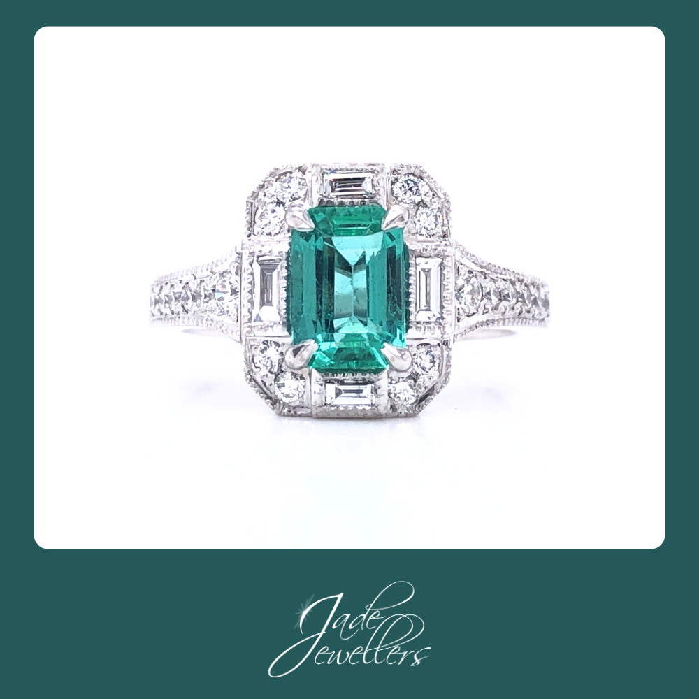 Custom Made 18ct White Gold Emerald & Diamond Ring