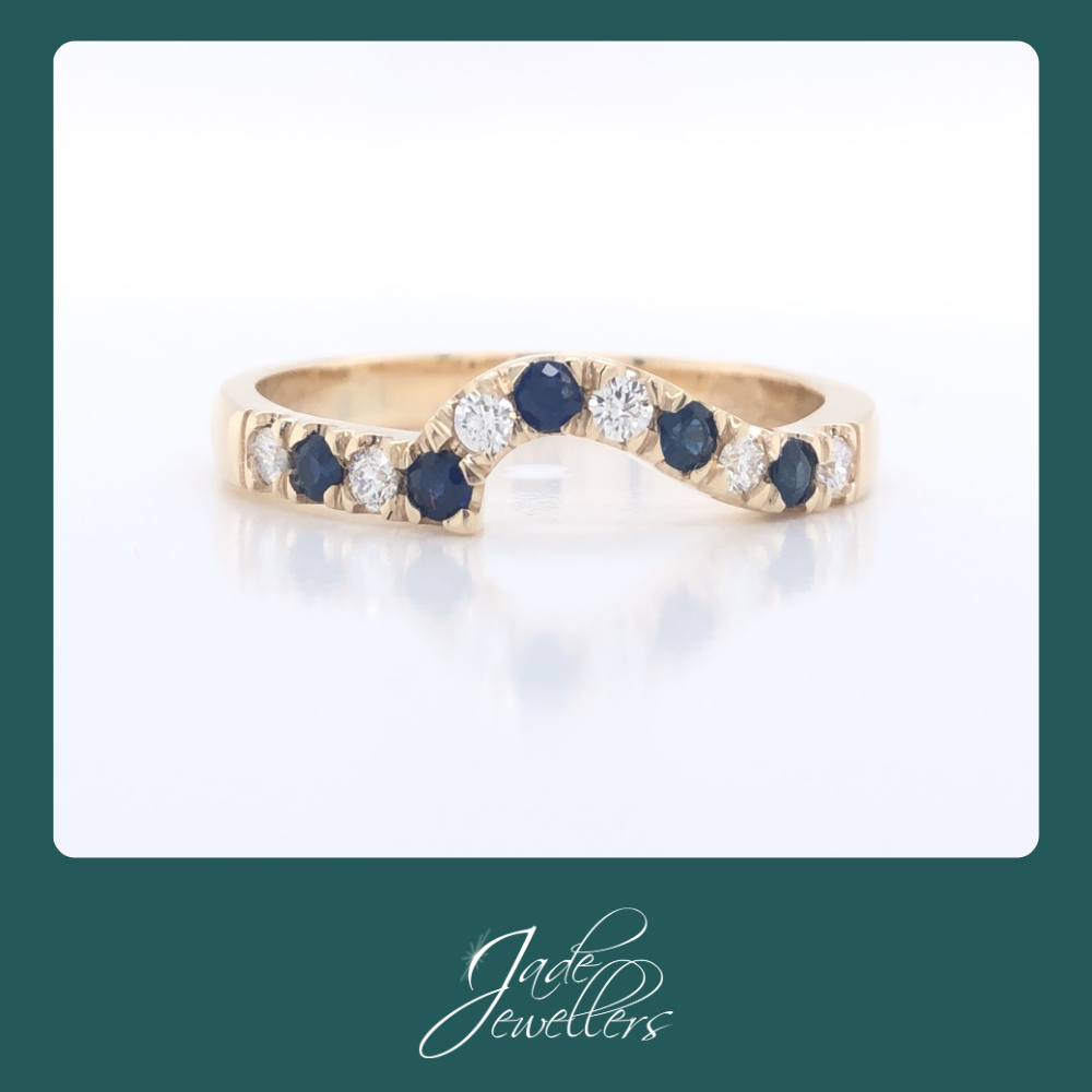 Custom Made 18ct Yellow Gold Sapphire & Diamond Fitted Wedding Ring