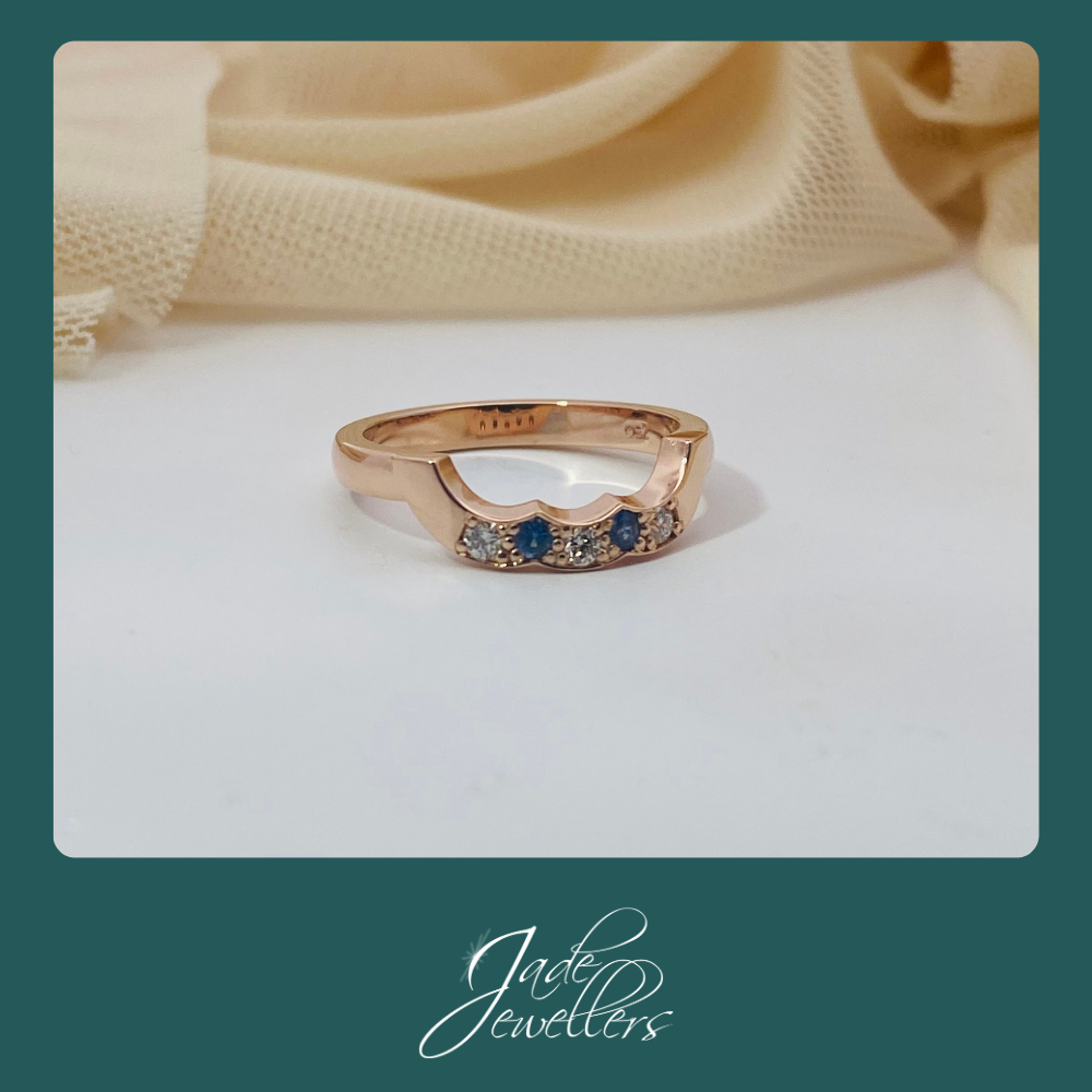 Custom Made 18ct Rose Gold Sapphire & Diamond Fitted Wedding Ring