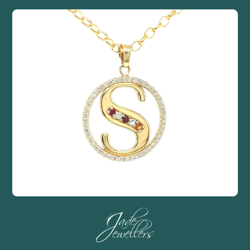Custom Made 9ct Yellow Gold Birthstone "S" Pendant