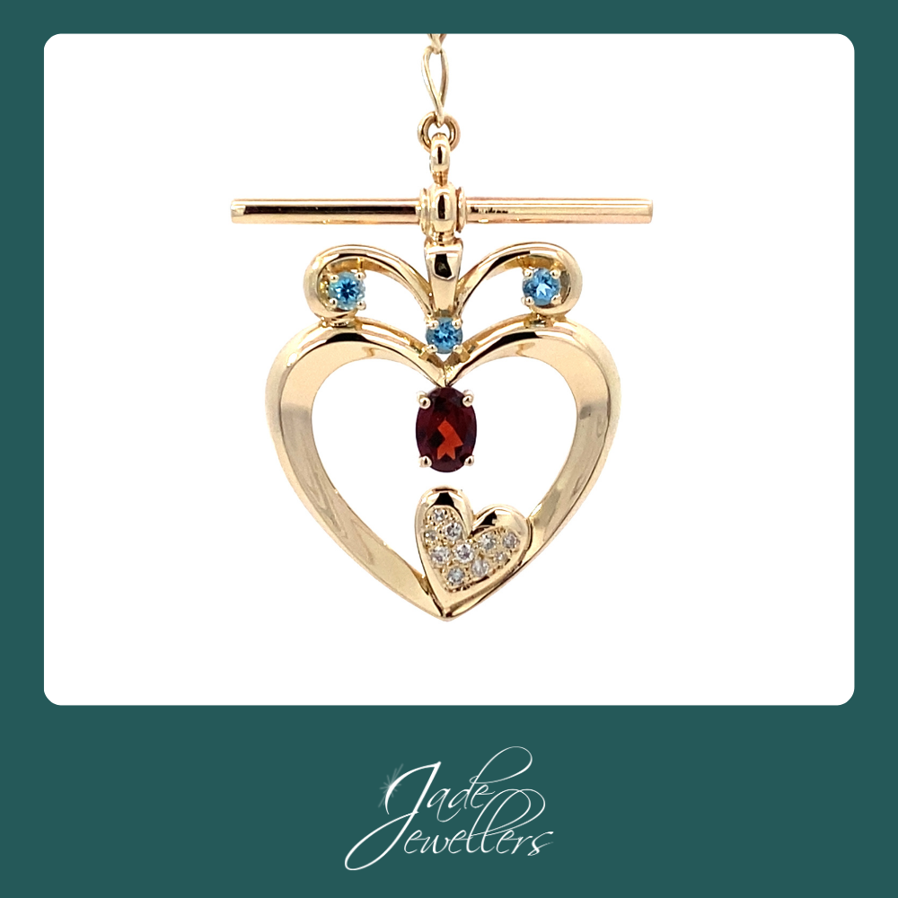 Custom Made 9ct Yellow Gold Garnet, Blue Topaz & Diamond Pendant