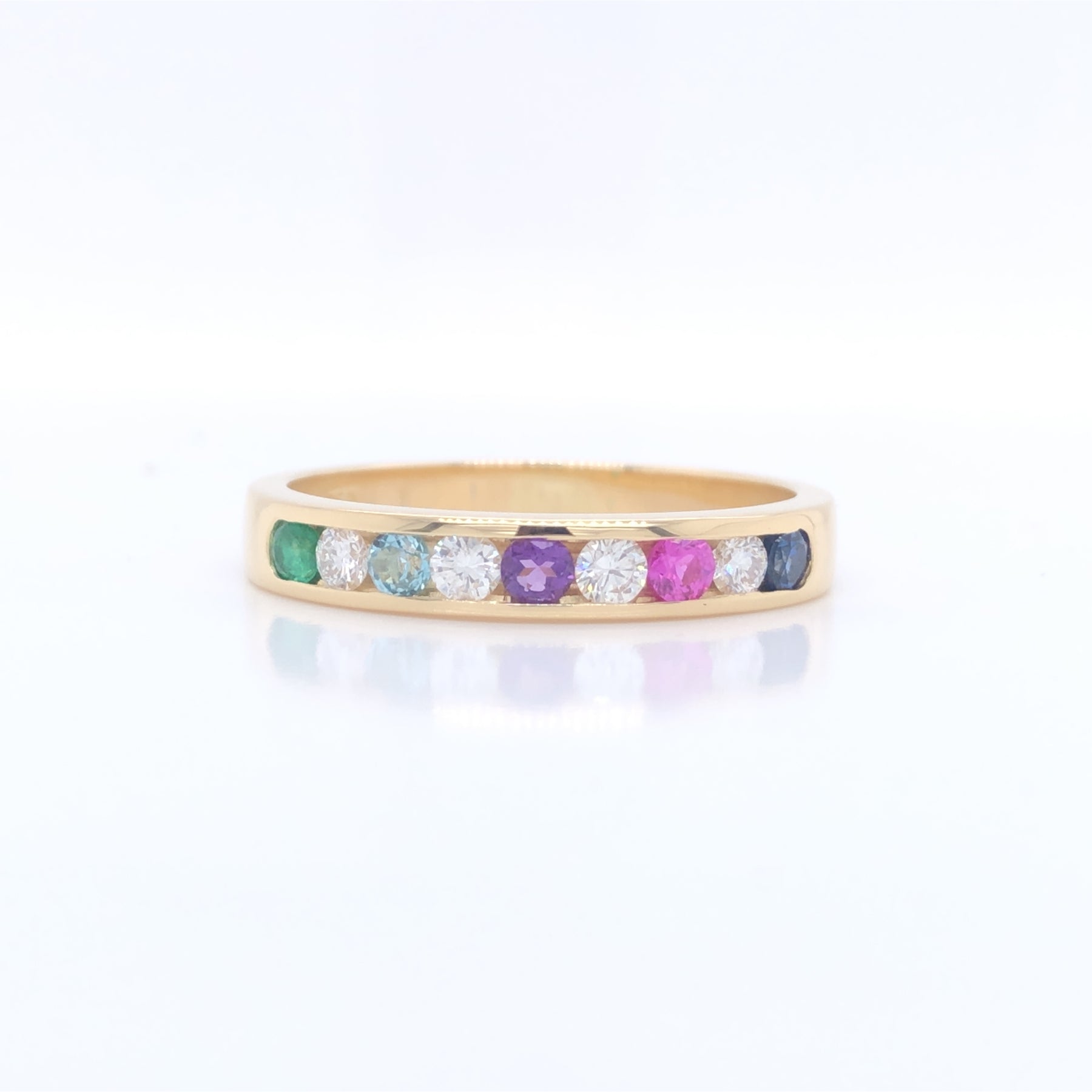 Custom Made Hand Crafted 18ct Yellow Gold Emerald, Aquamarine, Amethyst, Pink Tourmaline, Sapphire & Diamond Ring
