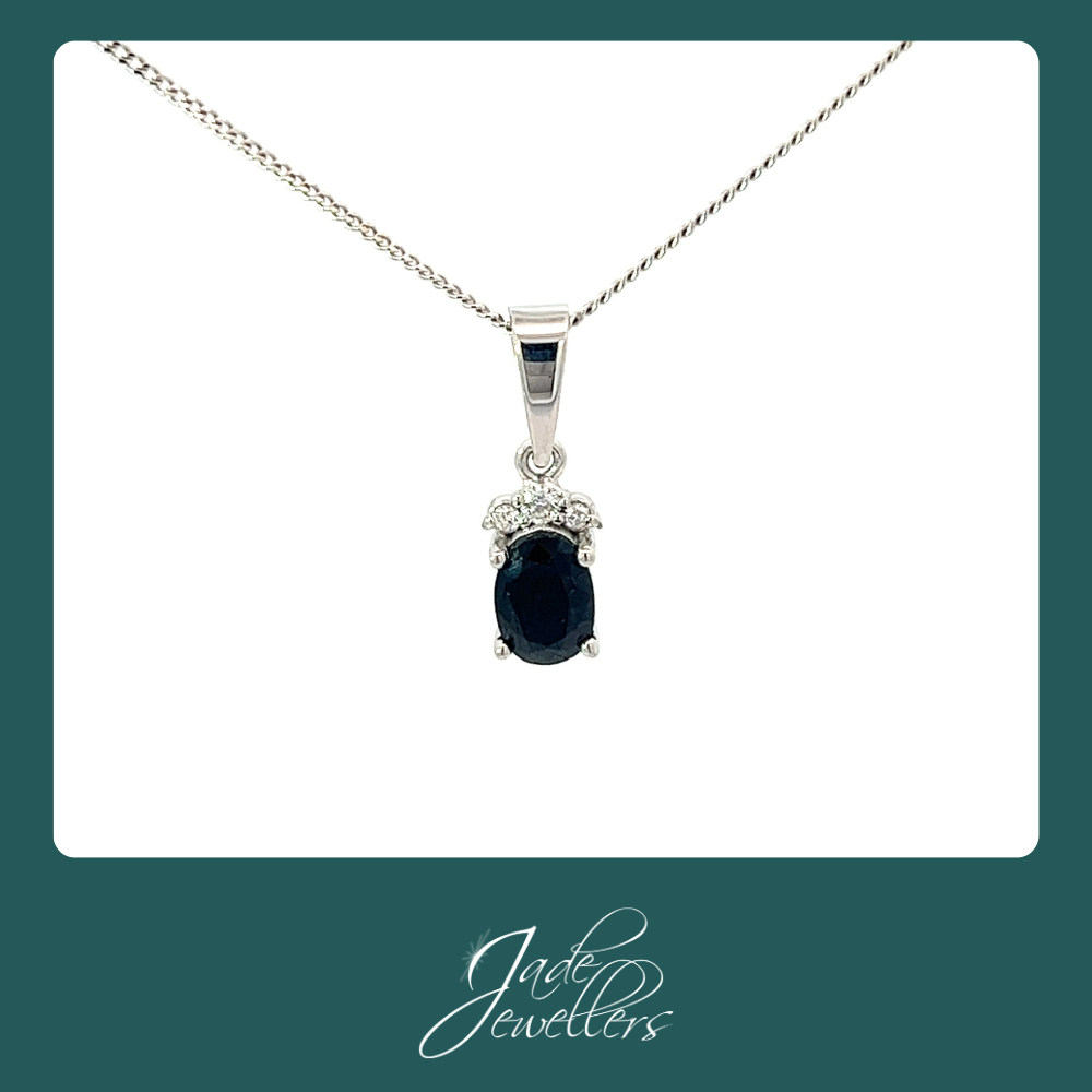 Custom Made CAD Produced 9ct White Gold Sapphire & Diamond Pendant