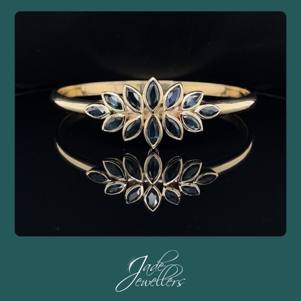 Custom Made 9ct Yellow Gold Sapphire Bangle
