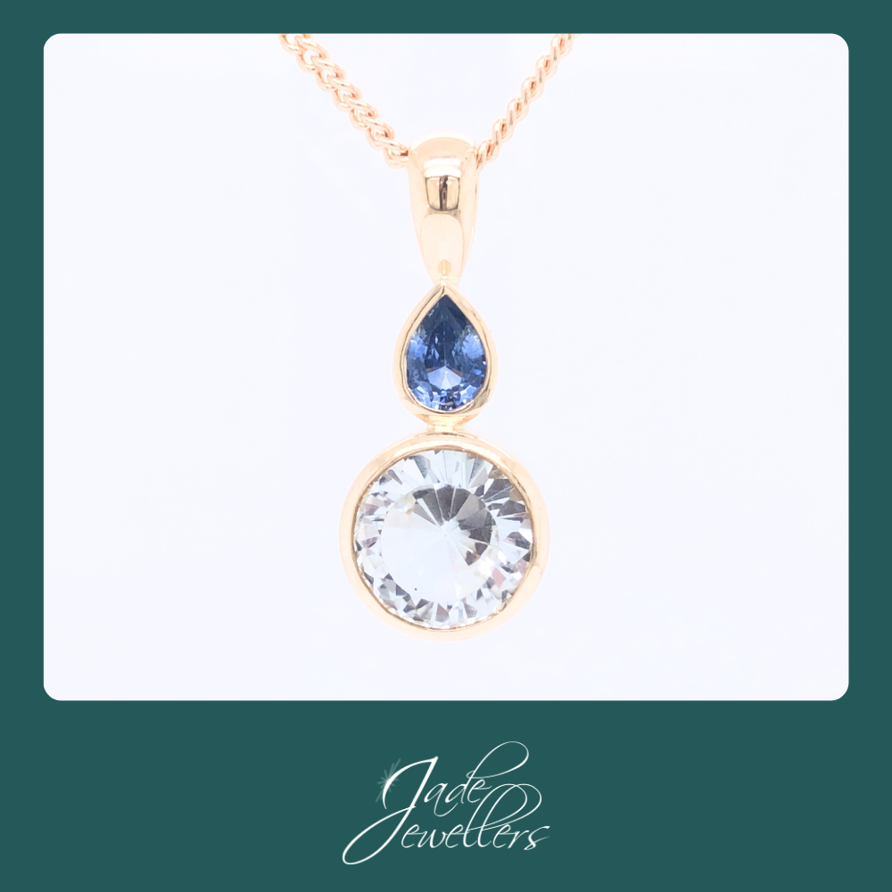 Custom Made 9ct Yellow Gold Sapphire & Blue Topaz Pendant