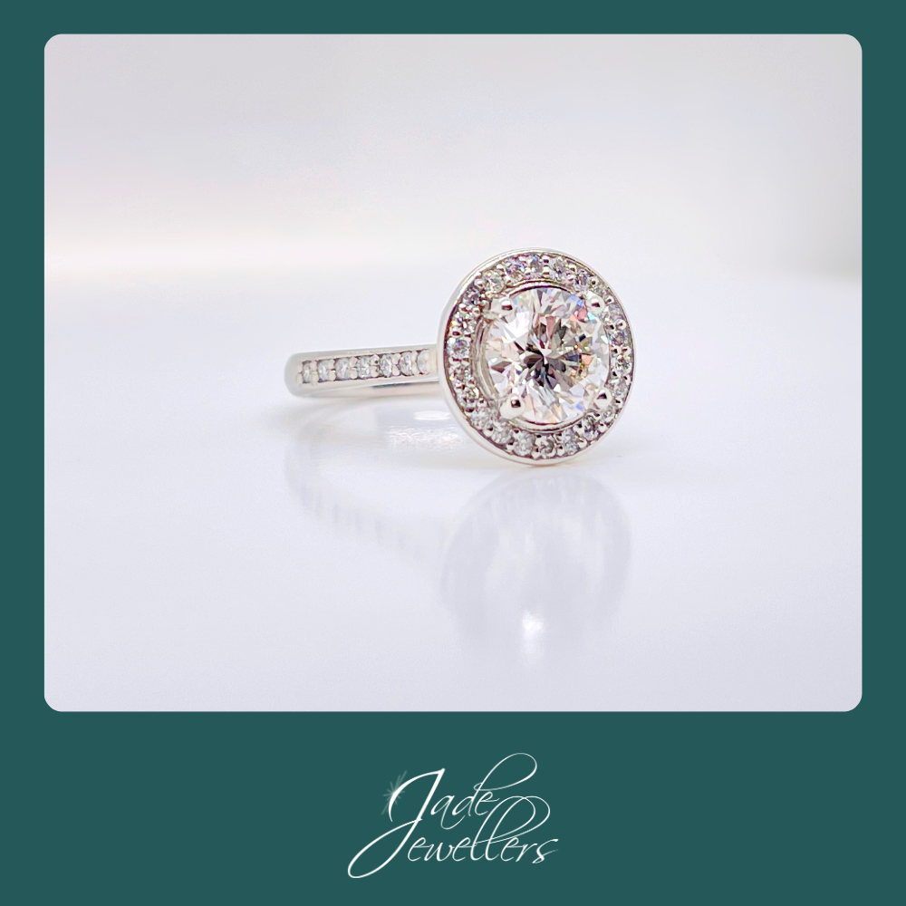 Custom Made CAD Produced Platinum Lab Grown Diamond Halo Engagement Ring