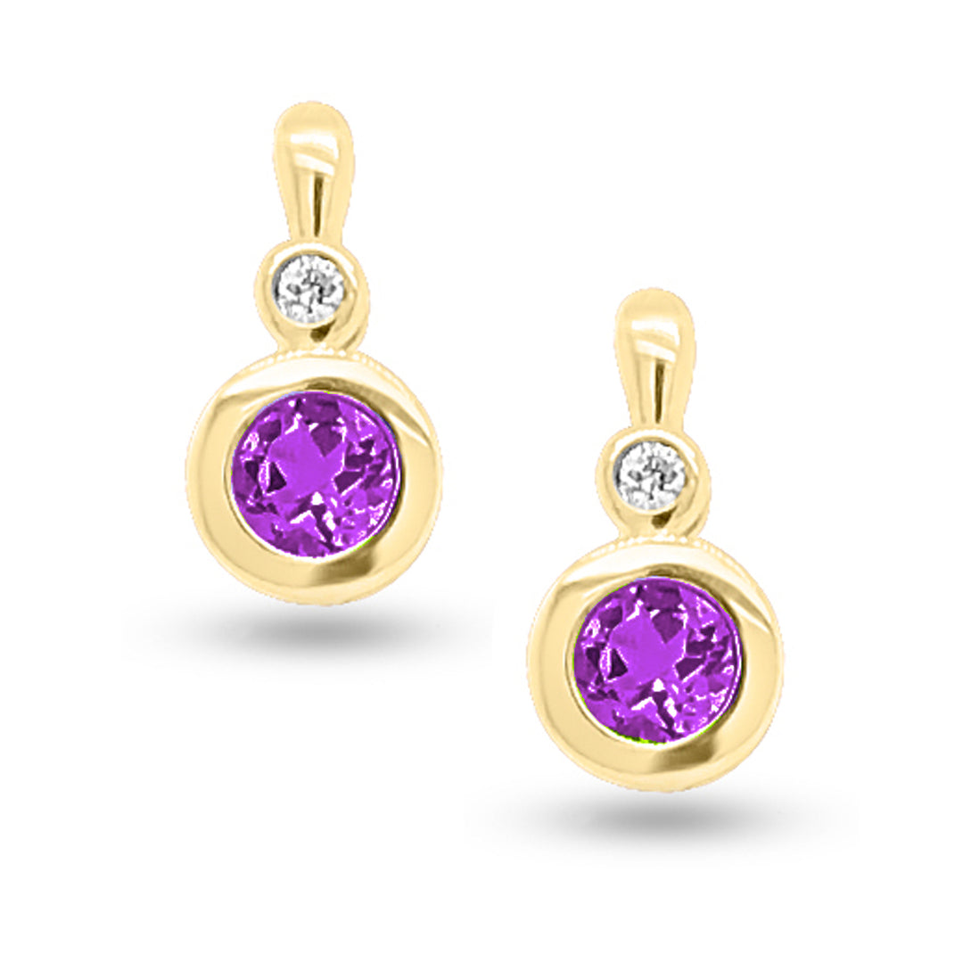 9ct Yellow Gold Amethyst & Diamond Stud Earrings