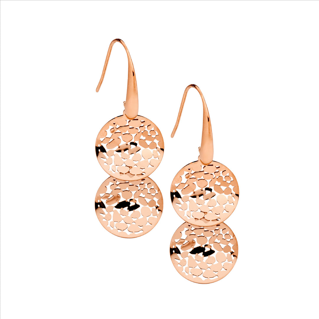 Stainless Steel Rose Gold Plated Disc Shephard Hook Earrings