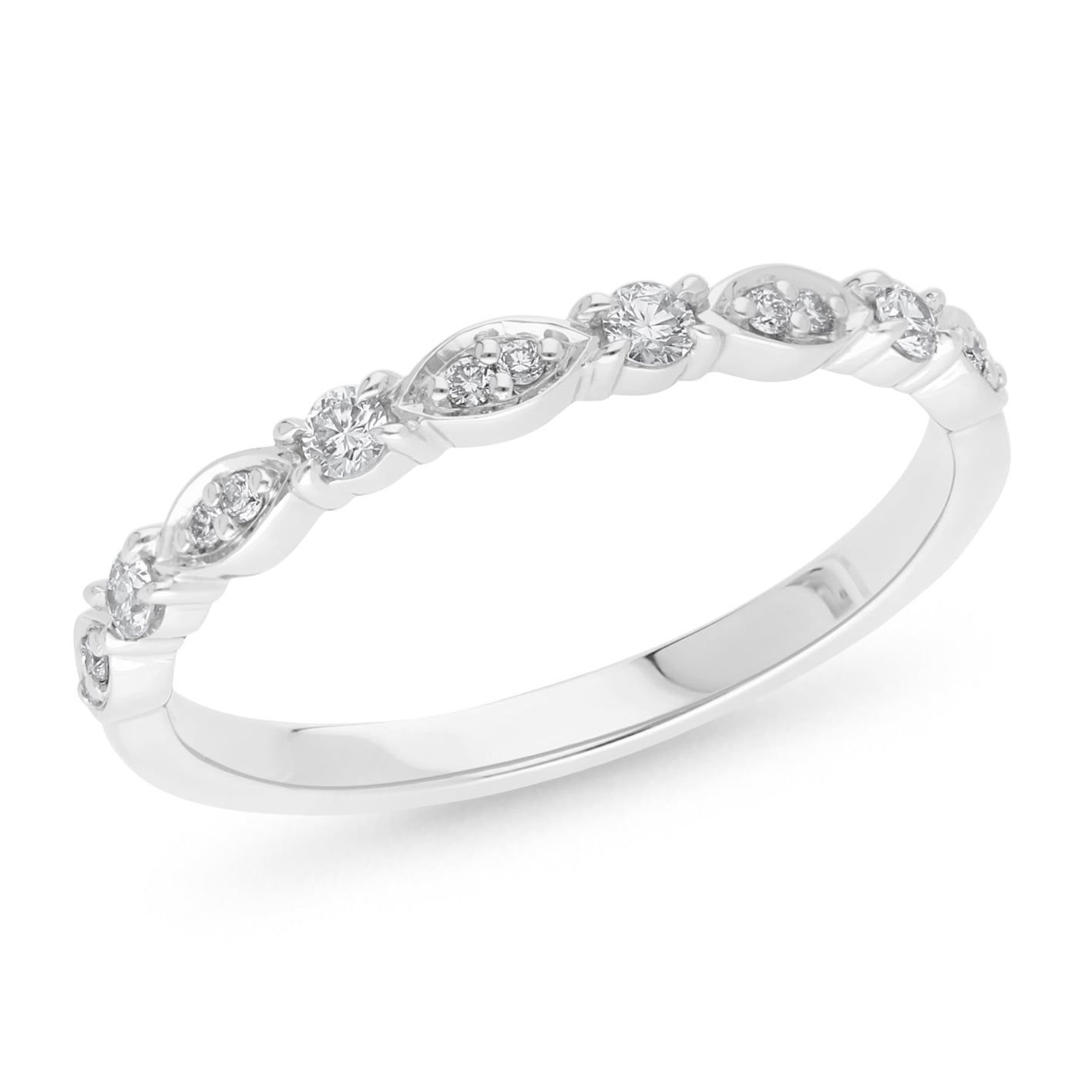 0.17ct TDW Claw Set Brilliant Cut Wedding Ring 4x 1.9mm Brilliant Cut Stones, 10x 1mm Brilliant Cut Stones. Made-To-Order Enquire Now To Customise To Your Desired Metal, Stone & Finger Sizes.