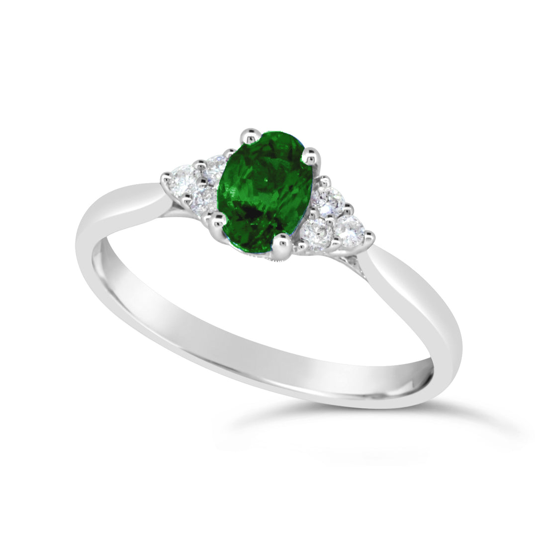 9ct White Gold Emerald & Diamond Ring