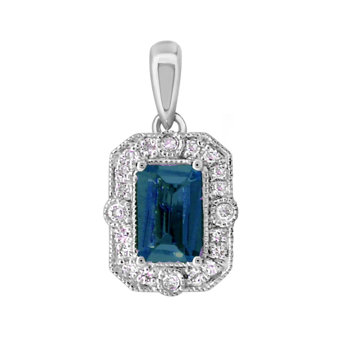 9ct White Gold London Blue Topaz & Diamond Pendant