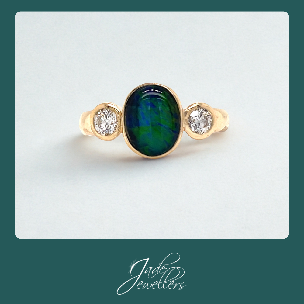 Custom Made Hand Crafted 18ct Yellow Gold Opal & Diamond Ring Made From Customers Old Jewellery